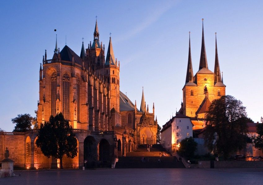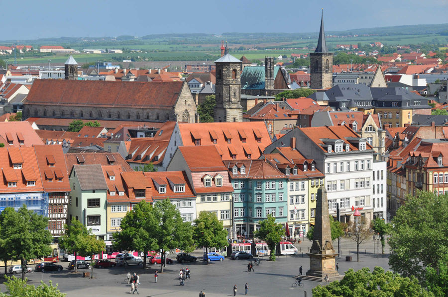 The earliest written records of Erfurt are from 742 A.D., when a diocese was established in the town of "Erphesfurt."It then grew into an important trading and warehousing center over the next few centuries. During the middle ages Erfurt prospered by selling the plant-based blue dye (known as "the golden fleece of Thuringia") throughout Europe until indigo came along in the 16th century. Erfurt also played an important part in the Reformation; Martin Luther became a monk and entered the priesthood in Erfurt. Erfurt then became capital the capital of Thuringia in 1991, two years after the reunification of Germany.